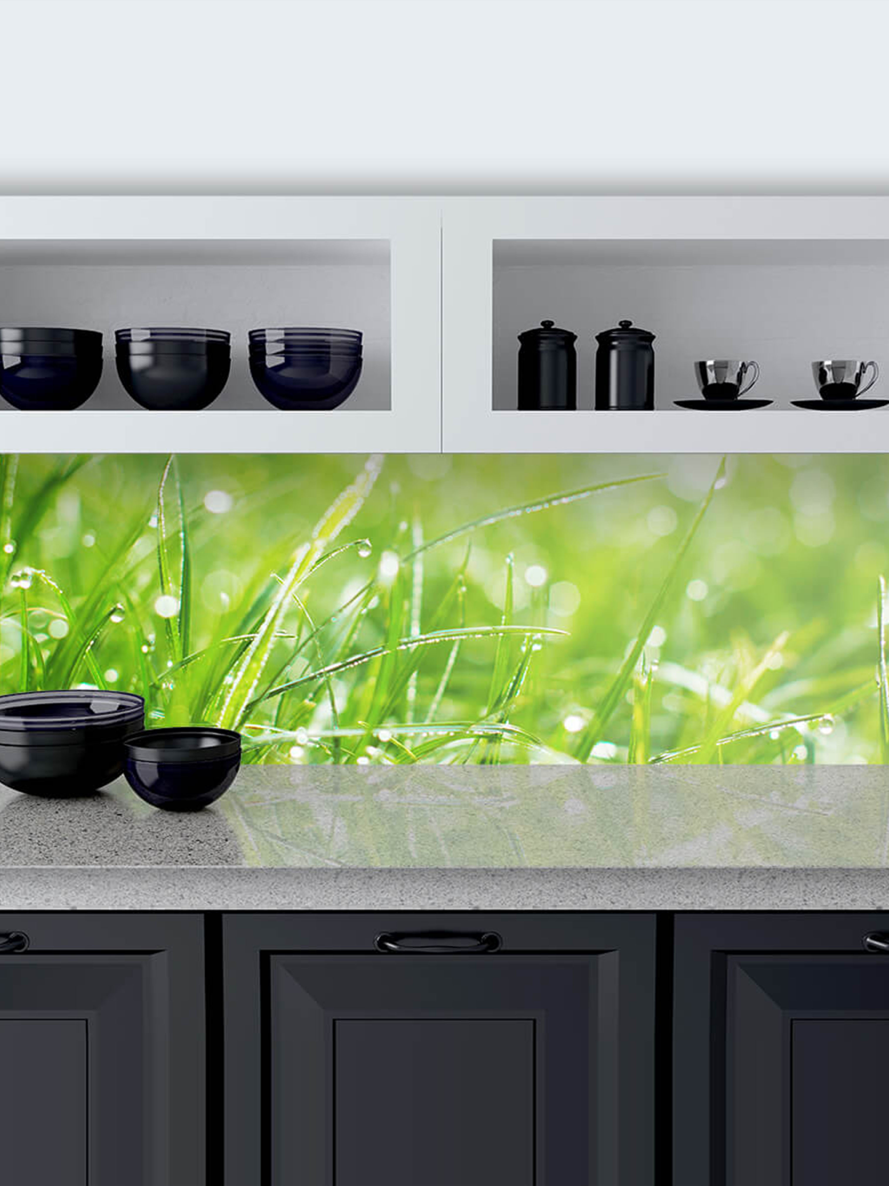 Wählen Sie zwischen der Glasfarbe „Normal“ (Grünstich) und „Optiwhite“ (Weißglas) Optiwhite wird dort angewendet, wo hochwertige Optik gefragt ist. Das Motiv kann individuell und nach Ihren Vorstellungen entsprechend ausgewählt werden. Hinweis: die Eigenfarbe von Glas ändert den Farbeindruck, deshalb wird empfohlen das entfärbte Glas Optiwhite zu wählen.